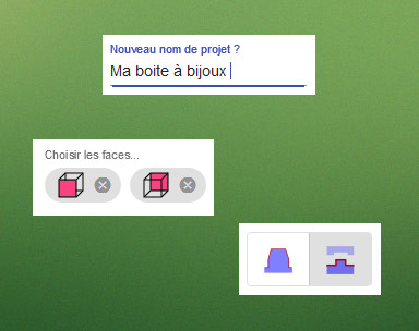 Par exemple l'assistant "boite" vous permet de rapidement créer un plan de découpe des côtés de votre future boite en bois.